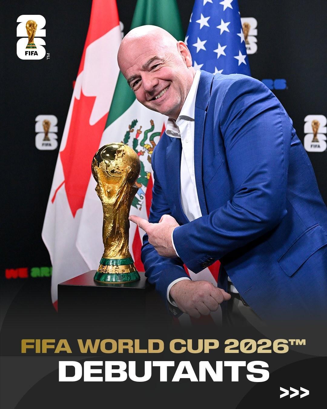 北京时间3月12日,国际足联主席因凡蒂诺发文,对将首次亮相世界杯决赛圈的几支球队表示欢迎。
