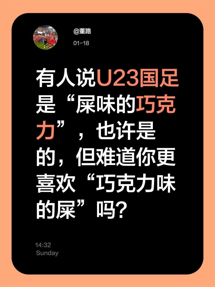 当历史性闯入四强的消息传回国内时,社媒沸腾了。这支曾被外界寄予厚望的球队,用防守创造了奇迹,再次证实足球是第一运动,也反映出了大家对国足真挚的爱:哪怕国足伤我百次、但凡成功一次,我定支持如初。